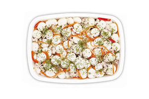 Frische Antipasti in verschiedenen Größen erhältlich und können auf Wunsch auch mit Ihrem Logo auf der Verpackung versehen werden.